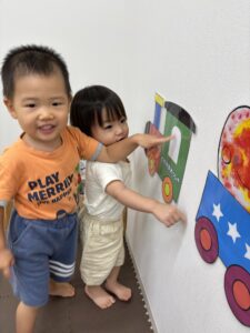 1歳児さんは乗り物が大好きなので「くだもの列車」をしました🍎🍇