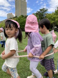 チャンキーヤーンを使って、電車ごっこもしました🚃「しゅしゅっぽっぽ~!」「とまりまーす!」とノリノリな子どもたち😍