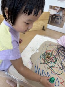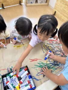 サインペンを使う練習で、大きな画用紙でくるくると描いていましたよ🖋⭐