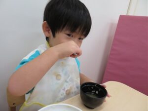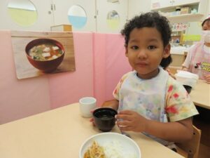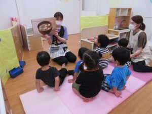 紙芝居ではお味噌を作る工程のイラストが・・・よく見ていた2歳児さん