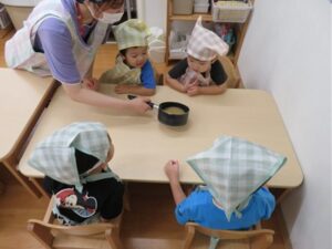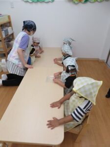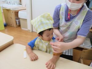 今日は先生と同じエプロンと三角巾もつけてみました!!!