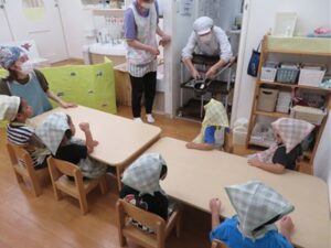 今日は先生と同じエプロンと三角巾もつけてみました!!!