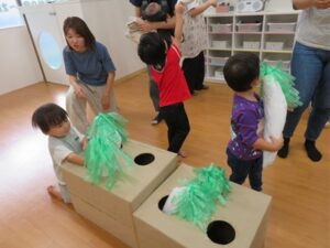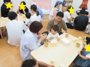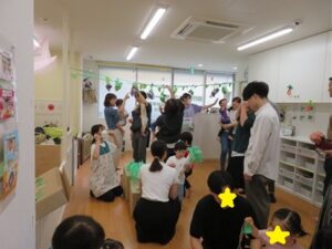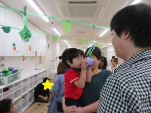 ・やさいさんの絵本を買ってお家でも楽しんでいる・お家に帰っておままごとを楽しみました・知っているお野菜の名前が増えてきました。洋風みそ汁おうちでも作ってみます。・いつもみそ汁を飲まないのに沢山食べていてびっくり!!などなど素敵な声を聞かせて頂き食育の大切さを保護者さんと園で共有でき、とても嬉しく思いました。