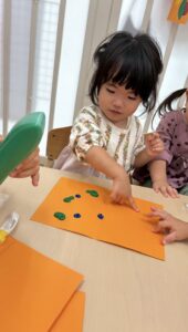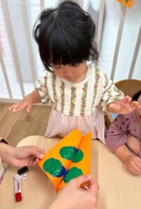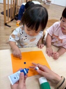 1歳児さんはまだ絵の具が指につくのがちょっぴり苦手です
