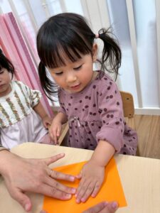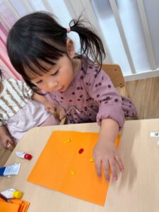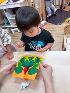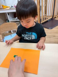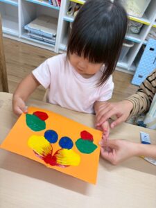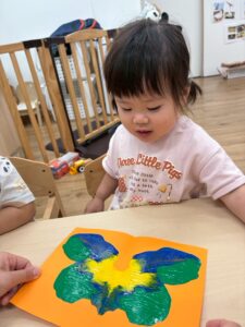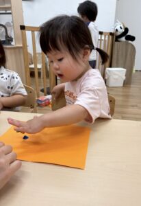 1歳児さんはまだ絵の具が指につくのがちょっぴり苦手です