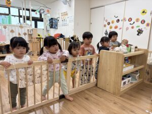 2歳児さんのゲームをじっと見ている1歳児さん💖