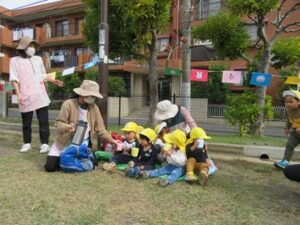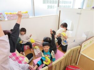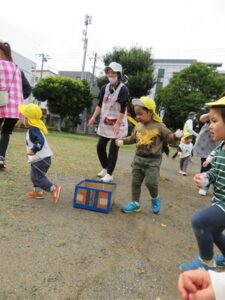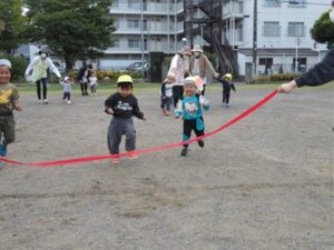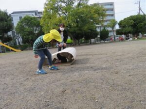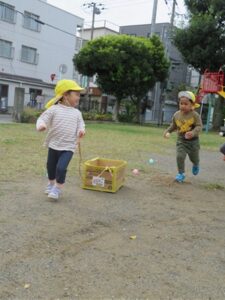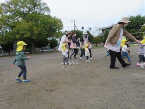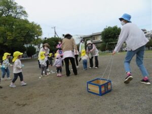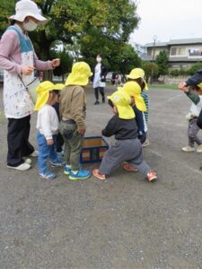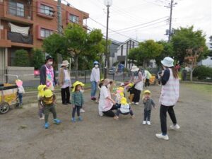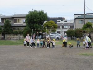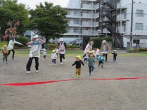 今日は公園で0.1.2歳さんみんな揃って「うんどうかいごっこ」です