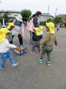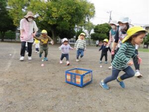 次は追いかけ玉入れ!!