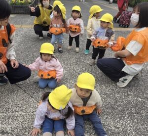 当日はカボチャをつけて、1歳児さんはお散歩に…
