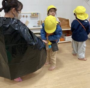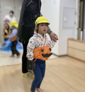 ハロウィンの絵本も見て「トリック オア トリート~!」と張り切っていました。