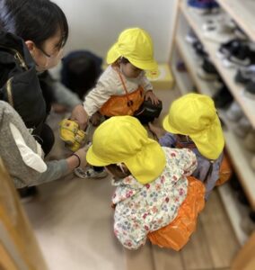根岸第二サンフラワー保育園へ帰ってくると、すぐ「みて~!」と貰ったお菓子やキャンディーなどを