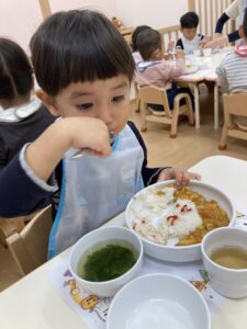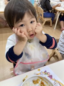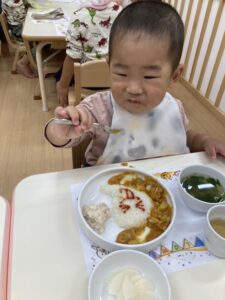 お散歩から帰ってくると、「今日、ごはんカレーじゃない?」とワクワクしていた子どもたち。😊