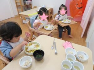 おばけが大好きな皆はうたを歌ったり、ステッキをもって踊ったり絵本を見たり毎日ハロウィンごっこを楽しんでいました