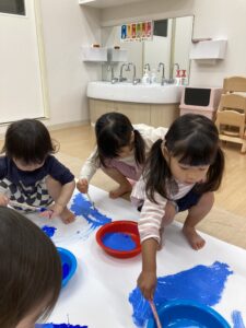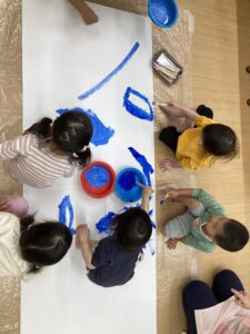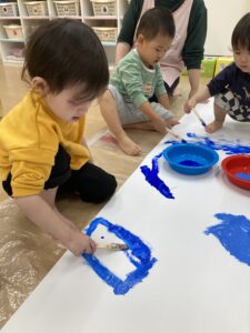 みんなで大きい紙に絵の具でお絵描きすることも楽しいですよね💓