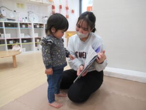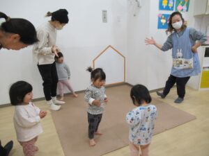 はじめはちょっぴり緊張している友だちもいましたが、みんなの好きな絵本や手遊びが始まるとニコニコ😄