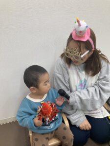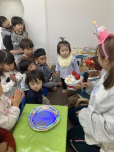 お誕生日おめでとう🎂 2025-11-25 ブログ 今日は、11月生まれのお友だちのお誕生日会をしました!🎂 お友だちがケーキを作っているのを真剣に見守る子どもたち。👀✨ 「ハッピーバースデー!」のお歌も歌い、お祝いをされて嬉しそうに笑っていました😍 一覧表示に戻る