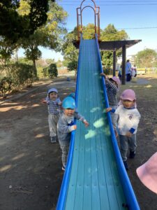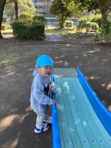 滑り台にどんぐりを転がして、コロコロ落ちていくのが面白かったようで