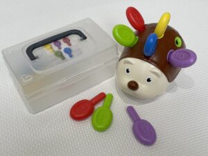 指先をよく見ていないと穴に入らないので、初めはなかなか入らずにいた0歳児さん。