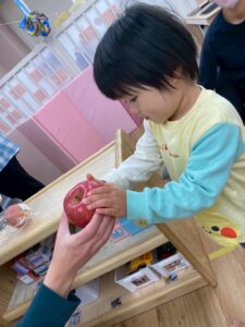 給食に出たりんごを美味しそうに頬張っていましたよ🎶