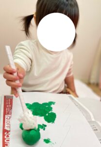 やっぱり直接触るのは少し抵抗があるお友だちは大人と一緒に行いました!