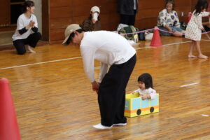 お父さん、お母さん、お姉ちゃん・・・などなど家族のみんなに運転してもらって緊張するお友達もいれば、ニコニコ笑顔で乗っているお友達もいるなど、みんな和気あいあいで親子競技を楽しみました⭐