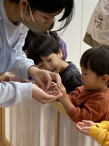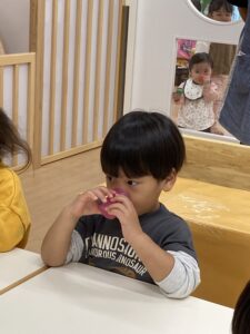 匂いを嗅いだり、触ってみたりりんごにたくさん触れることのできる時間になりました🍎