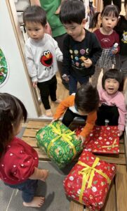 クラスごとにプレゼントが置いてあり、