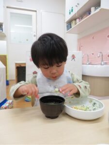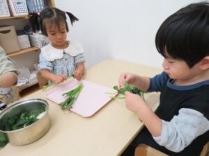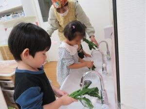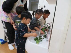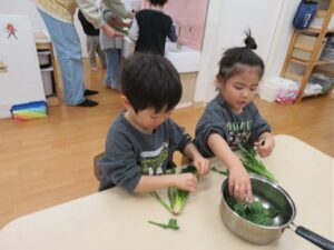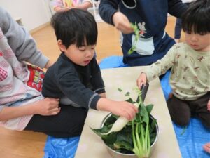 七草(せり・なずな・ごぎょう・はこべら・ほとけのざ・すずな・すずしろ)とほうれん草に触れました。