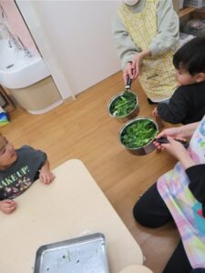 七草(せり・なずな・ごぎょう・はこべら・ほとけのざ・すずな・すずしろ)とほうれん草に触れました。