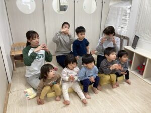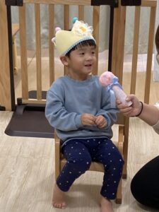 インタビューの時間になり「あ~なたのおなまえは?」と聞かれるとお友だちの前でお名前を上手に言え、「何歳になったの?」と聞くと「3さ~い!!!」と嬉しさが溢れていました✨