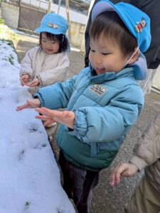 外に出てみんなで雪探しに行きました🎶