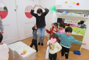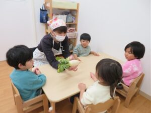 0.1.2歳さん皆で先生たちが作った手作り大根で大根音頭!!を楽しみました😊