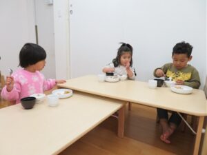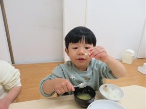給食は大根のおみそ汁!!「大根みつけた!!」大根を探しながら給食を楽しみました💕