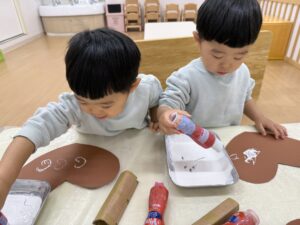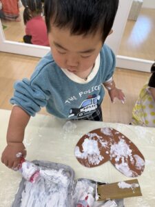 「ぽんぽん!」と絵の具が大好きな子どもたちは、上手にスタンプをしていましたよ🤩✨