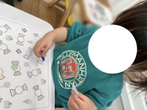 シール貼りやお絵描きが大好きな0歳児さん。
