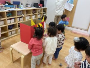 お話を聞いた後、なんと!?お部屋に赤鬼と青鬼発見!!!