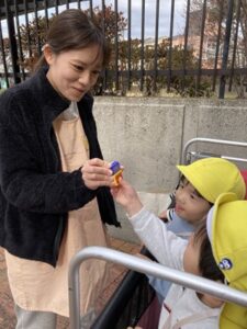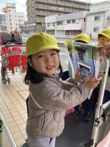 まだまだあそびたかった子どもたち。「まだ帰らない!」「もっとあそびたかった!」と怒ったり涙するお友だちもいましたが、「また今度本当のバスに乗って遠足に行くよ」と声を掛けると「え?本物のバス?」と次回の遠足に期待を膨らませていました!