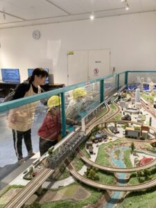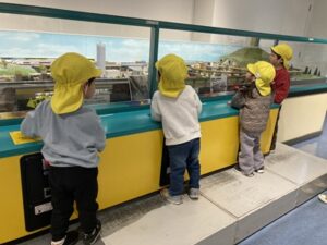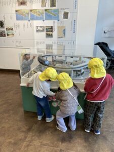 昔の電車を運転したり、アナウンス付きのジオラマも見る事が出来て、子どもたちは目を輝かせながら楽しんでいました。