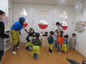 南行徳サンフラワー保育園では、1月から!鬼さん遊び、お面の製作、踊ったり、歌ったり毎日楽しんでいました。