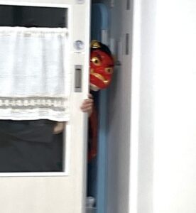 お部屋の中に隠れているおにさん探しのゲームをした後、見つけたおにを「おにはそと~!」と退治しました😤‼️