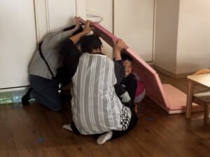 頭を守るダンゴムシの姿勢をとって上手に身を守ることができていました。