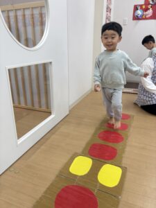 センサリーマットの上をそーっと慎重に歩く姿がありましたよ⭐⭐
