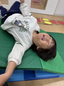マットの上をゴロゴロ転がり「きゃははは!」とお友だち同士で大笑いする姿もありました😆✨