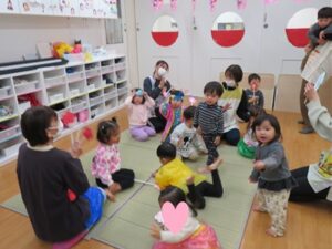 ひな祭りの由来やペープサートを見て楽しみました。