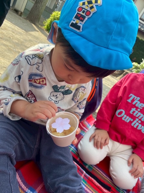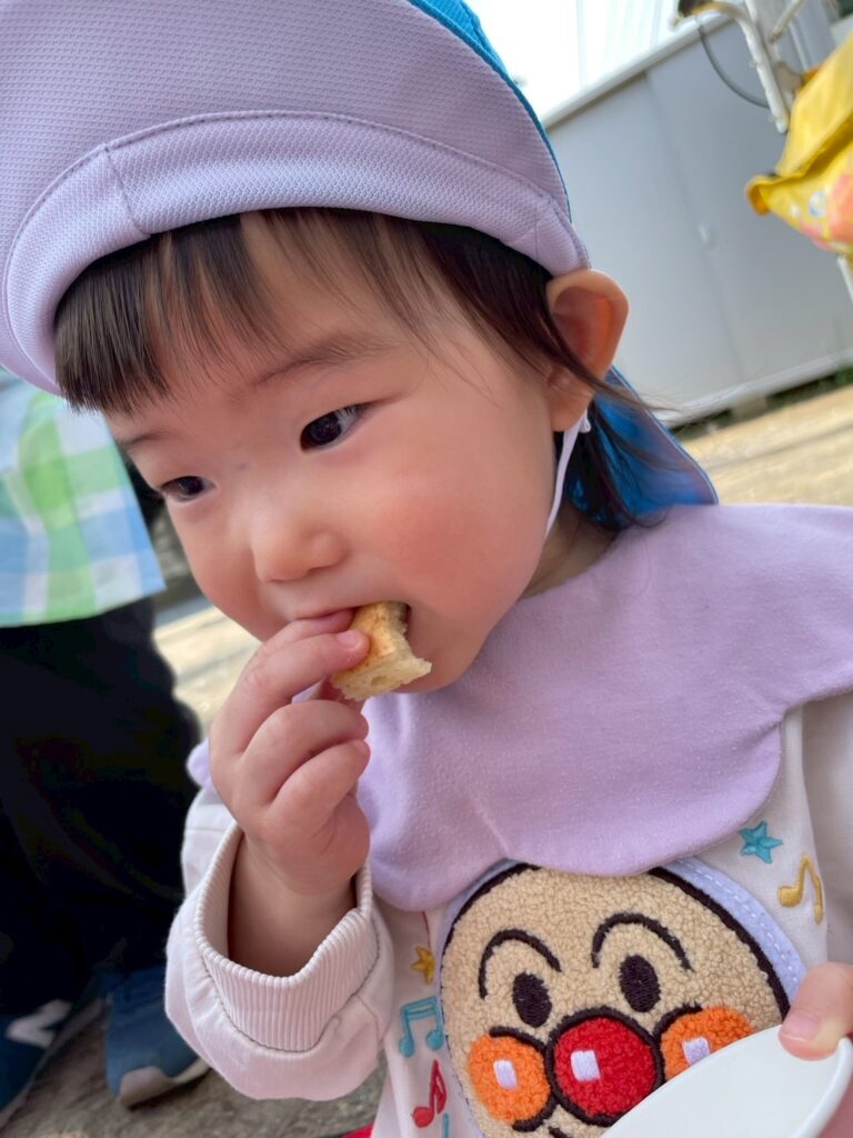 お外で食べるおやつは格別みんなよく食べていましたよ~♫