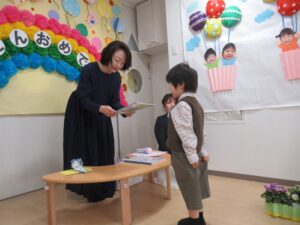 自信に満ちた顔で前へと出ていき、卒園証書を受け取ると、