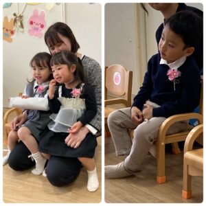 素敵なお洋服にコサージュをつけました♪みんなとっても似合っていました🩷