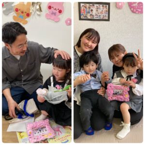 最後はお別れカード・卒園制作の写真たて・お花🌷を受け取ります。