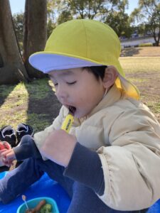 最後にみんなでお買い物したお菓子を食べて保育園に帰りました。