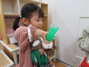 今日はかわいい赤ちゃんのお世話やお買い物ごっこをして遊びました。ミルクを飲ませたり抱っこが上手で素敵なままです✨